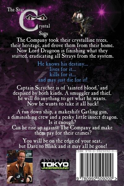 The Company took their crystalline trees, their heritage, and drove them from their home. Now Lord Dragoon is finishing what they started, eradicating all Strays from the system. He knows his destiny... Lives for it... Kills for it... And may just die for it! Captain Scrycher is of 'tainted blood,' and despised by both kinds. A smuggler and thief, he will do anything to get what he wants. Now he wants to take it all back! A run down ship, a makeshift Gatling gun, a diminishing crew and a pesky little insect dragon called Blink. Is it enough? Can he rise up against The Company and make them pay for their crimes? You will be on the edge of your seat, but Dare to Blink and it may all be gone!
