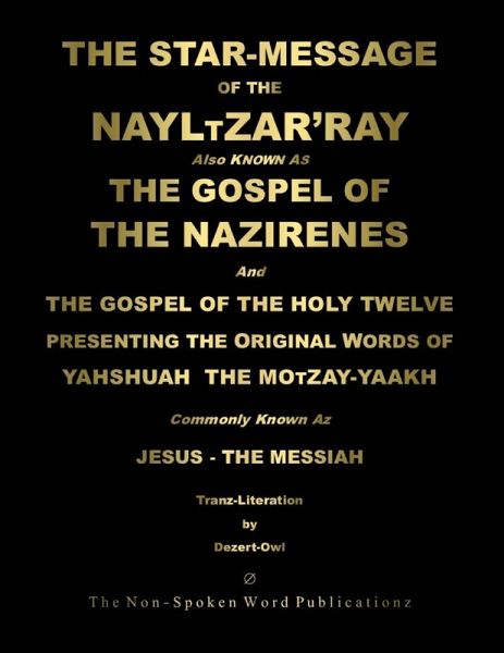 SIXTH EDITION. One Of The Greatest Challenges that we have, when we are dealing with Ancient Literature, is in the different use and meanings or implications of the words in each of the respective Ancient Tongues or Diction. Simply put, Diction can have FORCE and POWER or it can be totally DEAD. The Ænglish Diction for Example is totally Dead ; and it is dead, because it does not follow any of the natural-laws of Diction. That is, none of the original, root and universal-laws that still belong too basic Diction. There are a number of them, but they never show it to us in school. THE MOST BASIC LAW IN DICTION, is that, All Diction is supposed to SOUND as it 'APPEARS'. Since The Ænglish Diction is made up of many different tongue's and it is also a controlled, engineered, and bastardized form of Diction that is not simple, nor does it follow any of the required fundamental rules of Diction. And this is the reason we constantly hear, that English is one of the hardest forms of communication there is too learn. The Masculine and Feminine characteristics have been taken out, some letters have more than one sound, etc., we even have sounds in our words, that NO Letter can pronounce, as in the word, de jure, from the French. But All Diction universally has behind it, a thread that holds it all together within ONE GIANT MYSTERY and it is The Mystery Of Symbol. - A Micah Hill Dezert-Owl