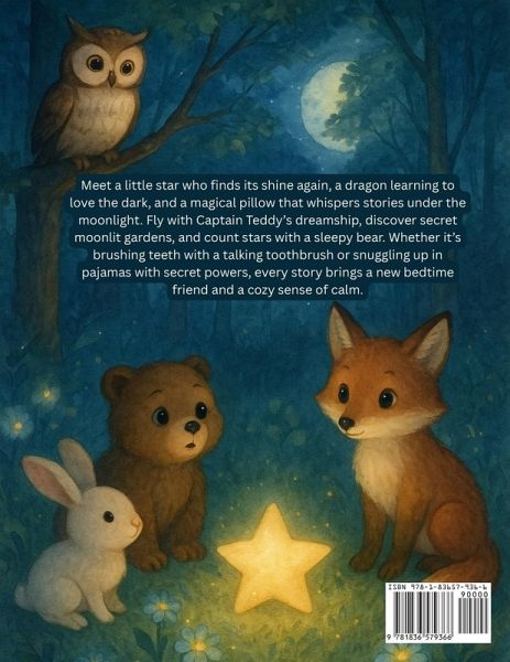 Bedtime Wonders: A Collection of Magical Nighttime Tales Drift into dreamland with Bedtime Wonders, a heartwarming collection of gentle, imaginative stories made just for children ages 4 to 8. Each tale is a soft adventure, full of whimsy, comfort, and just the right amount of wonder to end the day with a smile. Meet a little star who finds its shine again, a dragon learning to love the dark, and a magical pillow that whispers stories under the moonlight. Fly with Captain Teddy's dreamship, discover secret moonlit gardens, and count stars with a sleepy bear. Whether it's brushing teeth with a talking toothbrush or snuggling up in pajamas with secret powers, every story brings a new bedtime friend and a cozy sense of calm. With tales like: The Star Who Lost Its Shine Luna and the Sleepy Cloud Oliver the Owl Who Couldn't Stay Awake The Blanket That Traveled the World Millie and the Moonlight Garden The Dragon Who Was Afraid of the Dark Timmy and the Talking Toothbrush Captain Teddy and the Dreamship The Pajamas with Secret Powers The Sleepy Snowflake's Journey Ellie and the Giggle Stars The Bear Who Counted Stars Nico and the Night Rainbow The Sleepy Forest Orchestra Sasha and the Invisible Friend The Pillow That Told Bedtime Tales These soothing stories spark the imagination, ease nighttime fears, and create magical moments of connection between parent and child. Perfect for snuggles, giggles, and sweet dreams. Snuggle up, close your eyes, and let the stories begin...