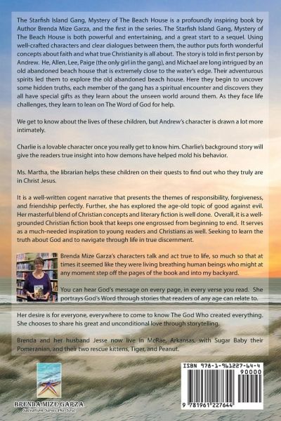 The Starfish Island Gang, Mystery of The Beach House is a profoundly inspiring book by Author Brenda Mize Garza, and the first in the series. The Starfish Island Gang, Mystery of The Beach House is both powerful and entertaining, and a great start to a sequel. Using well-crafted characters and clear dialogues between them, the author puts forth wonderful concepts about faith and what true Christianity is all about. The story is told in first person by Andrew. He, Allen, Lee, Paige (the only girl in the gang), and Michael are long intrigued by an old abandoned beach house that is extremely close to the water's edge. Their adventurous spirits led them to explore the old abandoned beach house. Here they begin to uncover some hidden truths, each member of the gang has a spiritual encounter and discovers they all have special gifts as they learn about the unseen world around them. As they face life challenges, they learn to lean on The Word of God for help. We get to know about the lives of these children, but Andrew's character is drawn a lot more intimately. Charlie is a lovable character once you really get to know him. Charlie's background story will give the readers true insight into how demons have helped mold his behavior. Ms. Martha, the librarian helps these children on their quests to find out who they truly are in Christ Jesus. It is a well-written cogent narrative that presents the themes of responsibility, forgiveness, and friendship perfectly. Further, she has explored the age-old topic of good against evil. Her masterful blend of Christian concepts and literary fiction is well done. Overall, it is a well-grounded Christian fiction book that keeps one engrossed from beginning to end. It serves as a much-needed inspiration to young readers and Christians as well. Seeking to learn the truth about God and to navigate through life in true discernment.