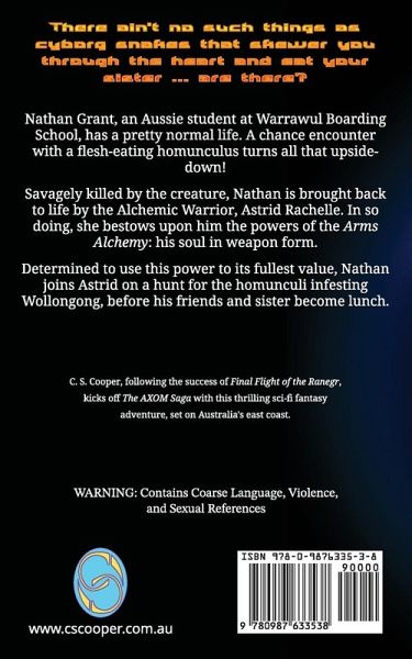 Nathan Grant, an Aussie student at Warrawul Boarding School, has a pretty normal life. A chance encounter with a flesh-eating Homunculus turns all that upside-down! Savagely killed by the creature, Nathan is brought back to life by the Alchemic Warrior, Astrid Rachelle. In so doing, she bestows upon him the powers of the Arms Alchemy: his soul in weapon form. Determined to use this power to its fullest value, Nathan joins Astrid on a hunt for the Homunculi infesting his town, before his friends and sister become lunch.