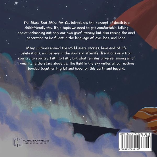The Stars That Shine for You introduces the concept of death in a child-friendly way. It's a topic we need to get comfortable talking about-enhancing not only our own grief literacy, but also raising the next generation to be fluent in the language of love, loss, and hope. Many cultures around the world share stories, have end-of-life celebrations, and believe in the soul and afterlife. Traditions vary from country to country, faith to faith, but what remains universal among all of humanity is the stars above us. The light in the sky unites all our nations bonded together in grief and hope, on this earth and beyond.