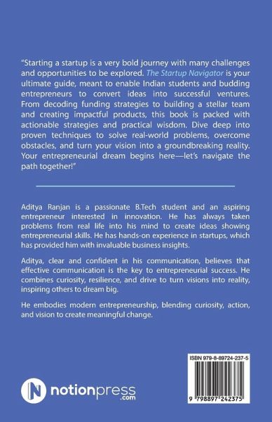 "Starting a startup is a very bold journey with many challenges and opportunities to be explored. The Startup Navigator is your ultimate guide, meant to enable Indian students and budding entrepreneurs to convert ideas into successful ventures. From decoding funding strategies to building a stellar team and creating impactful products, this book is packed with actionable strategies and practical wisdom. Dive deep into proven techniques to solve real-world problems, overcome obstacles, and turn your vision into a groundbreaking reality. Your entrepreneurial dream begins here-let's navigate the path together!"