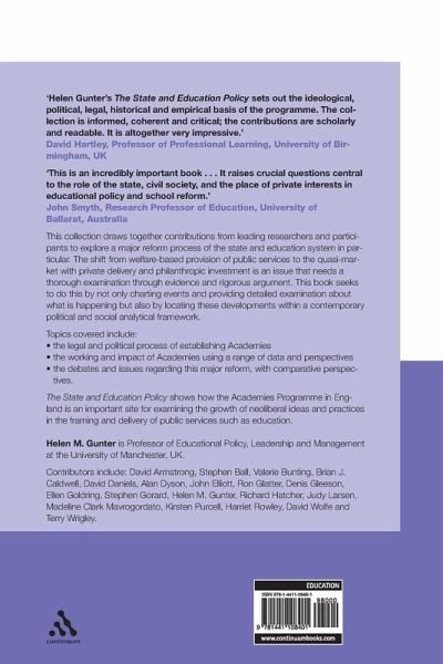 This collection draws together contributions from leading researchers and participants to explore a major reform process of the state and education system in particular. The shift from welfare-based provision of public services to the quasi-market with private delivery and philanthropic investment is an issue that needs a thorough examination through evidence and rigorous argument. This book seeks to do this by not only charting events and providing detailed examination about what is happening but also by locating these developments within a contemporary political and social analytical framework. Topics covered include: * the legal and political process of establishing Academies * the working and impact of Academies using a range of data and perspectives * the debates and issues regarding this major reform, with comparative perspectives. The State and Education Policy shows how the Academies Programme in England is an important site for examining the growth of neoliberal ideas and practices in the framing and delivery of public services such as education.
