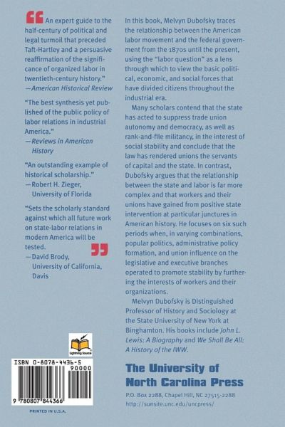 In this important new book, Melvyn Dubofsky traces the relationship between the American labor movement and the federal government from the 1870s until the present. His is the only book to focus specifically on the 'labor question' as a lens through which to view more clearly the basic political, economic, and social forces that have divided citizens throughout the industrial era. Many scholars contend that the state has acted to suppress trade union autonomy and democracy, as well as rank-and-file militancy, in the interest of social stability and conclude that the law has rendered unions the servants of capital and the state. In contrast, Dubofsky argues that the relationship between the state and labor is far more complex and that workers and their unions have gained from positive state intervention at particular junctures in American history. He focuses on six such periods when, in varying combinations, popular politics, administrative policy formation, and union influence on the legislative and executive branches operated to promote stability by furthering the interests of workers and their organizations.