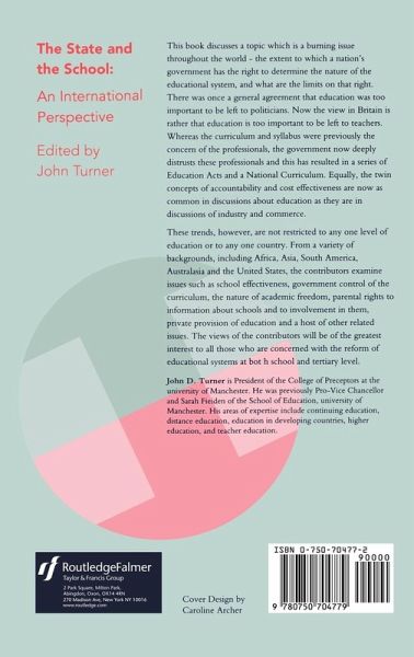 There was once agreement that education was too important to be left to politicians; now the view is that education is too important to be left to teachers. Whereas the curriculum and syllabus were previously the concern of the professionals, the government now distrusts these professionals. This has resulted in the Secretary for State assuming massive powers in a series of Education Acts, and there is now a national curriculum which intrudes into the fine details of the syllabus. Equally, the twin concepts of accountability and cost effectiveness are now as common in discussions about education as they are in discussions on industry and commerce.; These trends, however, are not restricted to any level of education or to any one country. They are as widespread in the great universities as they are in primary schools, and they are on the agenda not only in Britain and Europe, but in Australia, the US and virtually every country in the developed and developing world. With this in mind, this book examines the role of the state in education in many different countries and cultures.