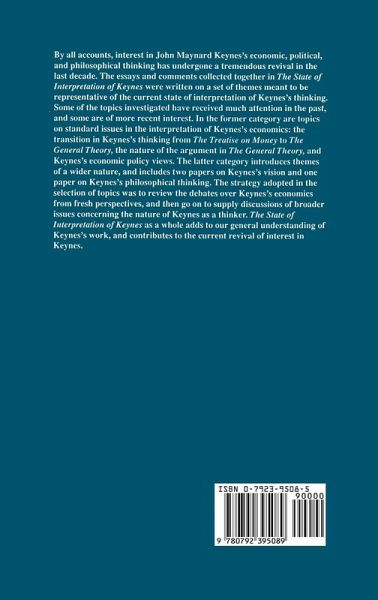 Interest in John Maynard Keynes's economic, political and philosophical thinking has undergone a tremendous revival in the last decade. The essays and comments collected in this volume were written on a set of themes representative of the current state of interpretation of Keynes's thinking. Some of the topics investigated have received much attention in the past, and some are of more recent interest. In the former category are topics on standard issues in the interpretation of Keynes's economics: the transition in Keynes's thinking from the The Treatise on Money to The General Theory, the nature of the argument in The General Theory, and Keynes's economic policy views. The latter category introduces themes of a wider nature, and includes two papers on Keynes's vision and one on Keynes's philosophical thinking.