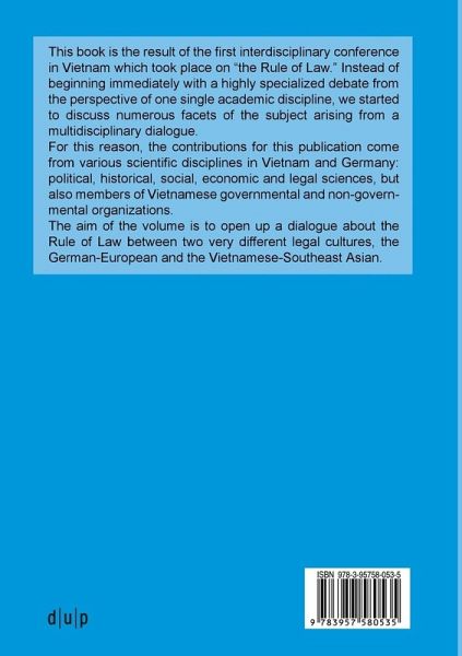 political, historical, social, economic and legal sciences, but also members of Vietnamese governmental and non-governmental organizations. The aim of the volume is to open up a dialogue about the Rule of Law between two very different legal cultures, the German-European and the Vietnamese-Southeast Asian.