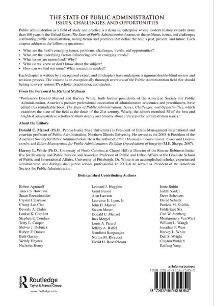 The trends and practices of public administration are ever changing and it is essential that they be appraised from time to time. Designed as a capstone survey of the field, The State of Public Administration focuses on leading edge issues, challenges, and opportunities that confront PA study and practice in the 21st Century.