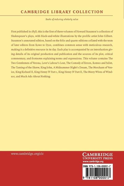 The first volume of Staunton's 1858 edition of Shakespeare's plays, with a life of Shakespeare, and illustrations by John Gilbert.