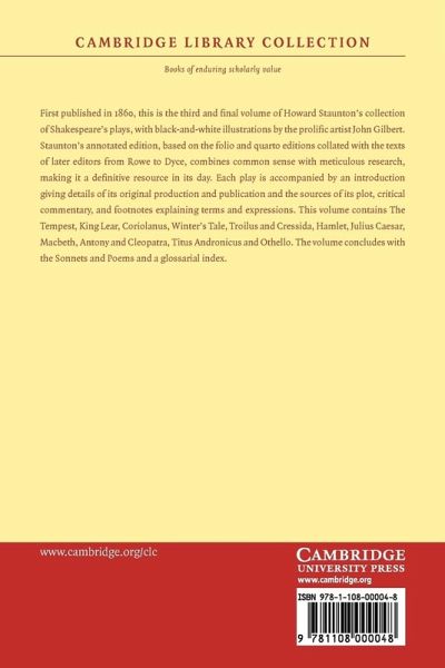 The third and final volume of Staunton's influential mid-nineteenth-century edition of Shakespeare's plays, with illustrations by John Gilbert.