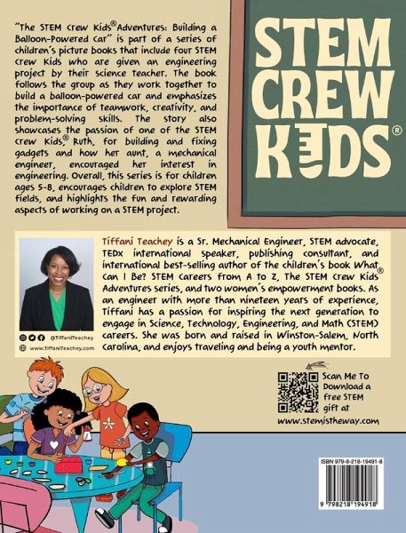 "The STEM Crew Kids Adventures: Building a Balloon-Powered Car" is a children's book about four STEM Crew Kids who are given an engineering project by their science teacher. The book follows the group as they work together to build a balloon-powered car and emphasizes the importance of teamwork, creativity, and problem-solving skills. The story also showcases the passion of one of the STEM Crew Kids, Ruth, for building and fixing gadgets and how her aunt, a mechanical engineer, encouraged her interest in engineering. Overall, the book encourages children to explore STEM fields and highlights the fun and rewarding aspects of working on a STEM project.