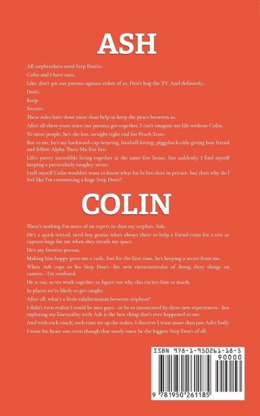 ASH All stepbrothers need Step Don'ts. Colin and I have ours. Like, don't pit our parents against either of us. Don't hog the TV. And definitely... Don't. Keep. Secrets. These rules have done more than help us keep the peace between us. After all these years since our parents got together, I can't imagine my life without Colin. To most people, he's the hot, straight tight end for Peach State. But to me, he's my backward-cap-wearing, football-loving, piggyback-ride-giving best friend and fellow Alpha Theta Mu frat bro. Life's pretty incredible living together at the same frat house, but suddenly, I find myself keeping a particularly naughty secret. I tell myself Colin wouldn't want to know what his bi bro does in private, but then why do I feel like I'm committing a huge Step Don't? COLIN There's nothing I'm more of an expert in than my stepbro, Ash. He's a quick-witted, nerd-boy genius who's always there to help a friend cram for a test or capture bugs for me when they invade my space. He's my favorite person. Making him happy gives me a rush...but for the first time, he's keeping a secret from me. When Ash cops to his Step Don't-his new extracurricular of doing dirty things on camera-I'm confused. He is too, so we work together to figure out why this excites him so much. In places we're likely to get caught. After all, what's a little exhibitionism between stepbros? I didn't even realize I could be into guys-or be so intoxicated by these new experiences-but exploring my bisexuality with Ash is the best thing that's ever happened to me. And with each touch, each time we up the stakes, I discover I want more than just Ash's body. I want his heart too, even though that surely must be the biggest Step Don't of all.