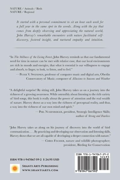 It started with a personal commitment to sit an hour each week for a full year in the same spot in the woods. John Harvey's intention was to reconnect with nature and observe the flow of natural life through the four seasons. As Harvey settled into his weekly routine of visiting his "sit spot" and fully engaging his senses, rich and illuminating experiences began to unfold. His encounters with nature included seeing and listening to a plethora of birds, from tiny wrens to large hawks, from sweet-singing warblers to rattling woodpeckers; enjoying the sight of seasonal plants such as wild violets, trout lily, and skunk cabbage; sitting out in the open during weather events that ranged from glorious warm summer sunshine to an Alberta clipper in the winter; and spotting the occasional deer and even a black bear. In all cases, Harvey sought to observe, listen, appreciate, and learn. Learn he did-about the birds, animals, plants, and trees that surrounded and intrigued him. But his remarkable encounters with nature also facilitated self-discovery, fostered insight, and nurtured empathy and intuition.