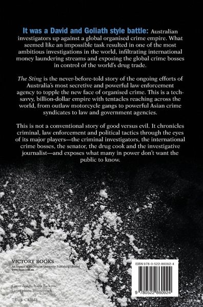 It was a David and Goliath style battle: Australian investigators up against a global organised crime empire. What seemed like an impossible task resulted in one of the most ambitious investigations in the world, infiltrating international money laundering streams and exposing the global crime bosses in control of the world’s drug trade. The Sting is the never-before-told story of the ongoing efforts of Australia’s most secretive and powerful law enforcement agency to topple the new face of organised crime. This is a tech-savvy, billion-dollar empire with tentacles reaching across the world, from outlaw motorcycle gangs to powerful Asian crime syndicates to law and government agencies. This is not a conventional story of good versus evil. It chronicles criminal, law enforcement and political tactics through the eyes of its major players—the criminal investigators, the international crime bosses, the senator, the drug cook and the investigative journalist—and exposes what many in power don’t want the public to know.