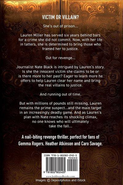 Victim or villain? She's out of prison... Lauren Miller has served six years behind bars for a crime she did not commit. Now, with her life in tatters, she is determined to bring those who framed her to justice. Out for revenge... Journalist Nate Black is intrigued by Lauren's story. Is she the innocent victim she claims to be or is there more to her past? Eager to learn more he offers to help Lauren clear her name and bring the real villains to justice. And running out of time. But with millions of pounds still missing, Lauren remains the prime suspect...and the main target in an increasingly deadly game. And as Lauren's plan with Nate reaches its shocking climax, no one knows who will ultimately take the fall... A nail-biting revenge thriller, perfect for fans of Gemma Rogers, Heather Atkinson and Caro Savage. 'A brilliant read that hooked me from the outset. The Fall is a tale of sweet revenge that I couldn't tear myself away from!' Bestselling author Gemma Rogers.