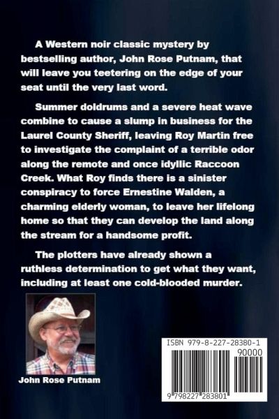 Summer doldrums and a severe heat wave combine to cause a slump in business for the Laurel County Sheriff, leaving Roy Martin free to investigate the complaint of a terrible odor along the remote and once idyllic Raccoon Creek. What Roy finds there is a sinister conspiracy to force Ernestine Walden, a charming elderly woman, to leave her lifelong home so that they can develop the land along the stream for a handsome profit. The plotters have already shown a ruthless determination to get what they want, including at least one cold-blooded murder.