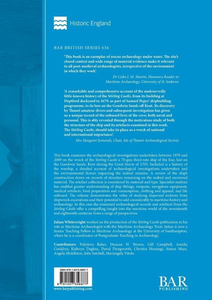 This book examines the archaeological investigations undertaken between 1979 and 2009 on the wreck of the Stirling Castle a 70-gun third-rate ship of the line, lost on the Goodwin Sands, Kent during the Great Storm of 1703. Included is a history of the warship, a detailed account of archaeological investigations undertaken and the environmental factors impacting the seabed remains. A review of the ship's construction draws on records of structure remaining on the seabed and recovered material. The artefact collection is considered by material and type. Specialist analysis has enabled greater understanding of ship fittings, weapons, navigation equipment, medical artefacts, food preparation and consumption, clothing and apparel, and life onboard. The volume demonstrates the value of studying dispersed archives from shipwreck excavations and their potential to add considerably to maritime history and archaeology. In this case the examined archaeological records and artefacts from the Stirling Castle offer a compelling insight into the maritime world of the seventeenth and eighteenth centuries from a range of perspectives.
