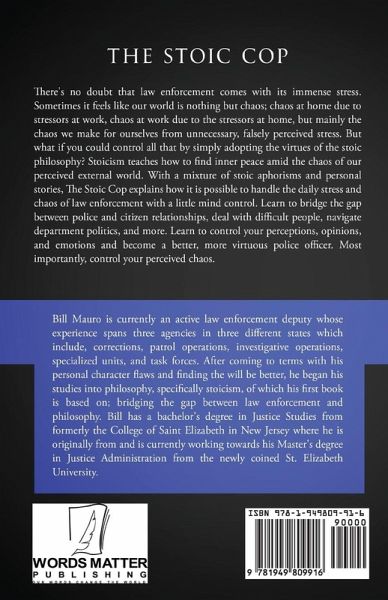 There's no doubt that law enforcement comes with its immense stress. Sometimes it feels like our world is nothing but chaos; chaos at home due to stressors at work, chaos at work due to the stressors at home, but mainly the chaos we make for ourselves from unnecessary, falsely perceived stress. But what if you could control all that by simply adopting the virtues of the stoic philosophy? Stoicism teaches how to find inner peace amid the chaos of our perceived external world. With a mixture of stoic aphorisms and personal stories, The Stoic Cop explains how it is possible to handle the daily stress and chaos of law enforcement with a little mind control. Learn to bridge the gap between police and citizen relationships, deal with difficult people, navigate department politics, and more. Learn to control your perceptions, opinions, and emotions and become a better, more virtuous police officer. Most importantly, control your perceived chaos.