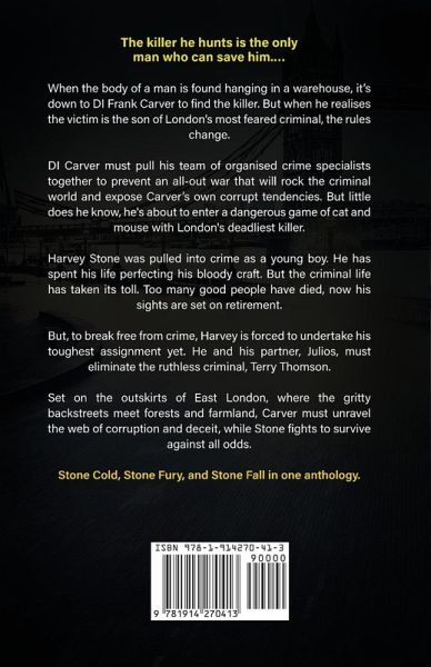 The first three Stone Cold Thrillers: Stone Cold, Stone Fury and Stone Fall. Stone Cold: When the body of a man is found hanging in a warehouse, it's down to DI Frank Carver to find the killer. But when he realises the victim is the son of London's most feared criminal, the rules change. Stone Fury: When the body of a girl is found to be linked to a human trafficking ring, Detective Inspector Frank Carver deploys his team of specialists to infiltrate, investigate and report back. Stone Fall: When an investigation led by Detective Inspector Frank Carver, is stalled following an attack on…mehr