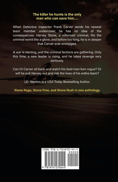 The second collection of Stone Cold Thrillers: Stone Rage, Stone Free and Stone Rush. Stone Rage: When Detective Inspector Frank Carver sends his newest team member undercover, he has no idea of the consequences. Harvey Stone, a reformed criminal, fits the criminal world like a glove, and before too long, he is in deeper that Carver ever envisaged. Stone Free: Harvey Stone plays guardian angel on international soil when two governments prepare to do battle, and the lives of innocent people are at stake. Stone Rush: Ex-Hitman, Harvey Stone yearns for a quiet life. But when a close friend is captured and tortured, and refugees are forced into slavery, Harvey is forced from retirement. Start your journey into the explosive action-thriller series by J.D. Weston, with this boxset that includes books 4-6 in one handy volume.