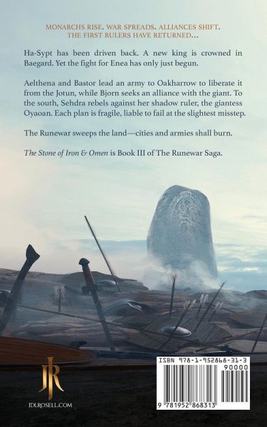 Monarchs rise. War spreads. Alliances shift. The first rulers have returned... Ha-Sypt has been driven back. A new king is crowned in Baegard. Yet the fight for Enea has only just begun. With Prince Alabastor by her side, Aelthena heads east to liberate Oakharrow, her home. Yet the Jotun still claims the city, and he will not easily yield it. To win this battle, Aelthena and her allies will have to bring all their wit and courage to bear. Bjorn's path also leads him to Oakharrow. Following the visions of an ancient king, he seeks an alliance among his foes. But prophecies are fickle things. For even a hope of success, Bjorn must risk bringing ruin to all the lands. To the south, Ha-Sypt pivots toward fresh conquests, while its new karah, Sehdra, rebels against her shadow ruler, the giantess Oyaoan. Though she has always trod quietly, Sehdra must walk a razor-thin line now. Even the slightest misstep might doom her fragile plans. The Runewar sweeps the land-cities and armies shall burn. The Stone of Iron & Omen is the third book in The Runewar Saga, a new epic fantasy series by the author of the best-selling Legend of Tal series. Continue the sprawling tale of war, wonder, friendship, and magic across the continent of Enea in this latest installment.