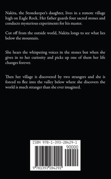 Nakita, the Stonekeeper's daughter, lives in a remote village high on Eagle Rock. Her father guards four sacred stones and conducts mysterious experiments for his master. Cut off from the outside world, Nakita longs to see what lies below the mountain. She hears the whispering voices in the stones but when she gives in to her curiosity and picks up one of them her life changes forever. Then her village is discovered by two strangers she is forced to flee into the valley below where she discovers the world is much stranger than she ever imagined.