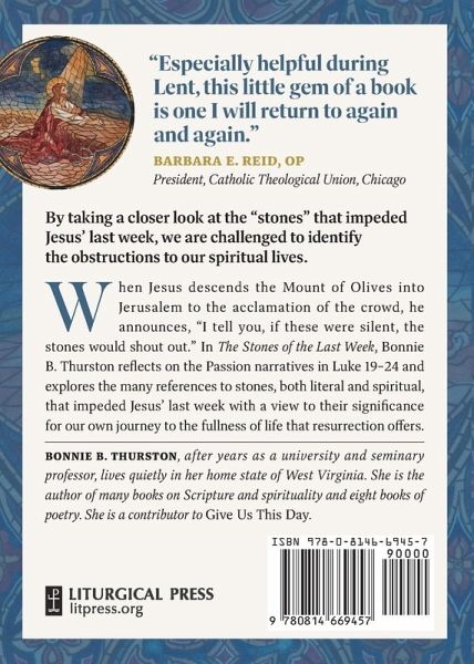 By taking a closer look at the "stones" that impeded Jesus's last week, we are challenged to identify the obstructions to our spiritual lives. When Jesus descends the Mount of Olives into Jerusalem to the acclamation of the crowd, he announces "I tell you, if these were silent, the stones would shout out." In The Stones of the Last Week, Bonnie B. Thurston reflects on the Passion narratives in Luke 19-24, and explores the many references to stones, both literal and spiritual, that impeded Jesus's last week with a view to their significance for our own journey to the fullness of life that resurrection offers. The Stones of the Last Week reflects on the impediments to Easter, challenging us to consider our own "stones,"--the difficulties, hindrances, and obstructions in our spiritual lives--from the perspective of talking stones, stones of destruction, impermanent stones, stones that measure distances, and the stone marking life and death. Turn to this enriching resource as Lent unfolds into Easter, or for personal reading and reflection throughout the year.