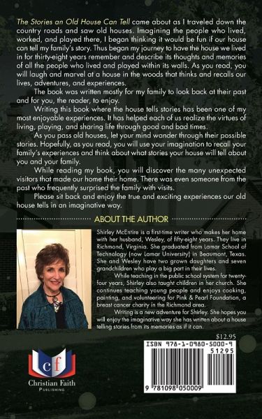 The Stories an Old House Can Tell came about as I traveled down the country roads and saw old houses. Imagining the people who lived, worked, and played there, I began thinking it would be fun if our house can tell my family's story. Thus began my journey to have the house we lived in for thirty-eight years remember and describe its thoughts and memories of all the people who lived and played within its walls. As you read, you will laugh and marvel at a house in the woods that thinks and recalls our lives, adventures, and experiences. The book was written mostly for my family to look back at their past and for you, the reader, to enjoy. Writing this book where the house tells stories has been one of my most enjoyable experiences. It has helped each of us realize the virtues of living, playing, and sharing life through good and bad times. As you pass old houses, let your mind wander through their possible stories. Hopefully, as you read, you will use your imagination to recall your family's experiences and think about what stories your house will tell about you and your family. While reading my book, you will discover the many unexpected visitors that made our home their home. There was even someone from the past who frequently surprised the family with visits. Please sit back and enjoy the true and exciting experiences our old house tells in an imaginative way.
