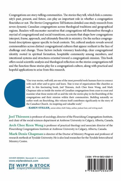 Congregations are story-telling communities. The stories they tell, which link a community's past, present, and future, can play an important role in whether a congregation flourishes or not. The Stories Congregations Tell features detailed case study research from seven dynamic Canadian congregations across theological traditions and geographical regions. Readers will encounter narratives that congregations tell themselves through a myriad of congregational and social transitions, accounts that shape how congregations interpret, frame, approach, and ultimately flourish in ministry. On the surface congregational descriptions appear specific to local contexts. Yet, cultural analysis reveals several commonalities across distinct congregational cultures that appear resilient in the face of challenge and change. These factors include visionary leadership, clear congregational identity rooted in spiritual formation, hospitable community among members, and intentional systems and structures oriented toward a congregation's mission. This book offers social scientific analysis and theological reflection on the stories congregations tell and the function those stories play for a congregation's culture, along with practical and hopeful applications to arise from this research.