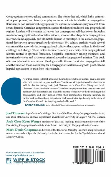 Congregations are story-telling communities. The stories they tell, which link a community's past, present, and future, can play an important role in whether a congregation flourishes or not. The Stories Congregations Tell features detailed case study research from seven dynamic Canadian congregations across theological traditions and geographical regions. Readers will encounter narratives that congregations tell themselves through a myriad of congregational and social transitions, accounts that shape how congregations interpret, frame, approach, and ultimately flourish in ministry. On the surface congregational descriptions appear specific to local contexts. Yet, cultural analysis reveals several commonalities across distinct congregational cultures that appear resilient in the face of challenge and change. These factors include visionary leadership, clear congregational identity rooted in spiritual formation, hospitable community among members, and intentional systems and structures oriented toward a congregation's mission. This book offers social scientific analysis and theological reflection on the stories congregations tell and the function those stories play for a congregation's culture, along with practical and hopeful applications to arise from this research.