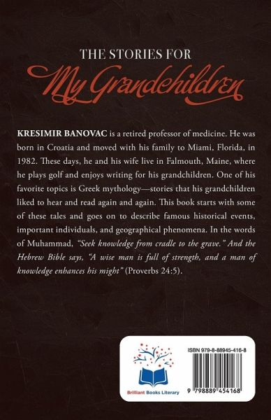 KRESIMIR BANOVAC is a retired professor of medicine. He was born in Croatia and moved with his family to Miami, Florida, in 1982. These days, he and his wife live in Falmouth, Maine, where he plays golf and enjoys writing for his grandchildren. One of his favorite topics is Greek mythology-stories that his grandchildren liked to hear and read again and again. This book starts with some of these tales and goes on to describe famous historical events, important individuals, and geographical phenomena. In the words of Muhammad, "Seek knowledge from cradle to the grave." And the Hebrew Bible says, "A wise man is full of strength, and a man of knowledge enhances his might" (Proverbs 24:5).