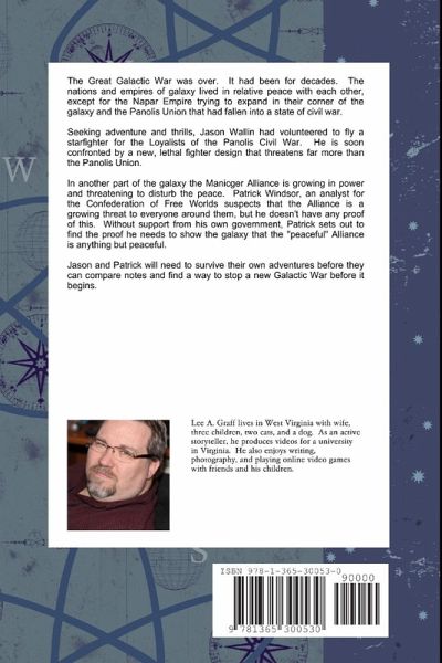 Seeking adventure and thrills, Jason Wallin had volunteered to fly a starfighter for the Loyalists of the Panolis Civil War. He is soon confronted by a new, lethal fighter design that threatens far more than the Panolis Union. In another part of the galaxy, the Manicger Alliance is growing in power and threatening to disturb the peace. Patrick Windsor, an analyst for the Confederation of Free Worlds suspects that the Alliance is a growing threat to everyone around them, but he doesn't have any proof of this. Without support from his own government, Patrick sets out to find the proof he needs to show the galaxy that the "peaceful" Alliance is anything but peaceful. Jason and Patrick will need to survive their own adventures before they can compare notes and find a way to stop a new Galactic War before it begins.