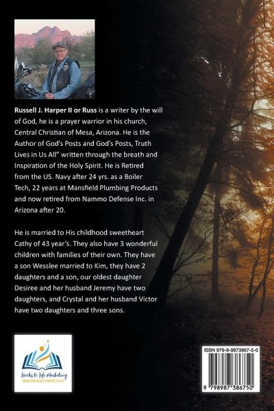 I have been inspired to write this book and my last book "Gods Posts" Truth Lives In Us All", through the Holy Spirit. My wife and I read scripture and lessons each and every morning, I have gone through a lot of things in my life and I have been writing since I was in a mass media class in 1973 starting with Poetry and writing short stories when I was in High school. There is words in these books that I am sure everyone can relate to. This is God's Gift to me of revival to all, I believe End Times are here and I love you all just as we are taught in His commandments Mark 12:28-34 NIV 29 "The most important one," answered Jesus, "is this: 'Hear, O Israel: The Lord our God, the Lord is one. 30 Love the Lord your God with all your heart and with all your soul and with all your mind and with all your strength.' 31 The second is this: 'Love your neighbor as yourself.' There is no commandment greater than these." I feel that the journalling that was impressed upon me from church and was further impressed by the Holy Spirit; led me to share to others what all of you need to read, hear and understand from our Lord. I want to impress on all, that the Bible is the living breath of God and that He loves us all unconditionally. The only way to be with Him as sinless People in Heaven is the path created for us to have our sins forgiven and to keep out of Hell. That path was His son Jesus Christ who died on a cross and took all our sins with him for all time. We need to believe in him and ask for forgiveness of our sins. John 3:16 says: 16 For God so loved the world that he gave his one and only Son, that whoever believes in him shall not perish but have eternal life.