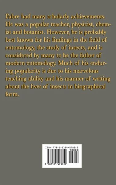Fabre had many scholarly achievements. He was a popular teacher, physicist, chemist and botanist. However, he is probably best known for his findings in the field of entomology, the study of insects, and is considered by many to be the father of modern entomology. Much of his enduring popularity is due to his marvelous teaching ability and his manner of writing about the lives of insects in biographical form.