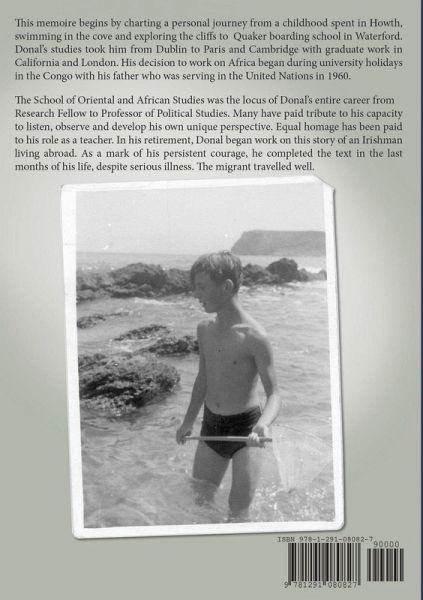 This memoire begins by charting a personal journey from a childhood spent in Howth, swimming in the cove and exploring the cliffs to Quaker boarding school in Waterford. Donal's studies took him from Dublin to Paris and Cambridge with graduate work in California and London. His decision to work on Africa began during university holidays in the Congo with his father who was serving in the United Nations in 1960. The School of Oriental and African Studies was the locus of Donal's entire career from Research Fellow to Professor of Political Studies. Many have paid tribute to his capacity to listen, observe and develop his own unique perspective. Equal homage has been paid to his role as a teacher. In his retirement, Donal began work on this story of an Irishman living abroad. As a mark of his persistent courage, he completed the text in the last months of his life, despite serious illness. The migrant travelled well.