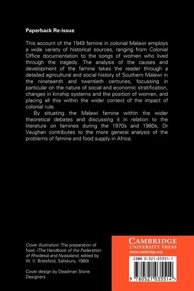 This account of the 1949 famine in colonial Malawi employs a wide variety of historical sources, ranging from Colonial Office documentation to the songs of women who lived through the tragedy. The analysis of the causes and development of the famine takes the reader through a detailed agricultural and social history of Southern Malwai in the nineteenth and twentieth centuries, focusing in particular on the nature of social and economic stratification, changes in kinship systems and the position of women and placing all this within the wider context of the impact of colonial rule.
