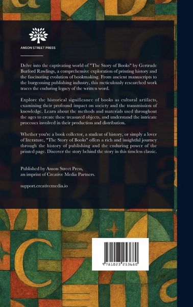 Delve into the captivating world of "The Story of Books" by Gertrude Burford Rawlings, a comprehensive exploration of printing history and the fascinating evolution of bookmaking. From ancient manuscripts to the burgeoning publishing industry, this meticulously researched work traces the enduring legacy of the written word. Explore the historical significance of books as cultural artifacts, examining their profound impact on society and the transmission of knowledge. Learn about the methods and materials used throughout the ages to create these treasured objects, and understand the intricate processes involved in their production and distribution. Whether you're a book collector, a student of history, or simply a lover of literature, "The Story of Books" offers a rich and insightful journey through the history of publishing and the enduring power of the printed page. Discover the story behind the story in this timeless classic. This work has been selected by scholars as being culturally important, and is part of the knowledge base of civilization as we know it. This work is in the public domain in the United States of America, and possibly other nations. Within the United States, you may freely copy and distribute this work, as no entity (individual or corporate) has a copyright on the body of the work. Scholars believe, and we concur, that this work is important enough to be preserved, reproduced, and made generally available to the public. We appreciate your support of the preservation process, and thank you for being an important part of keeping this knowledge alive and relevant.
