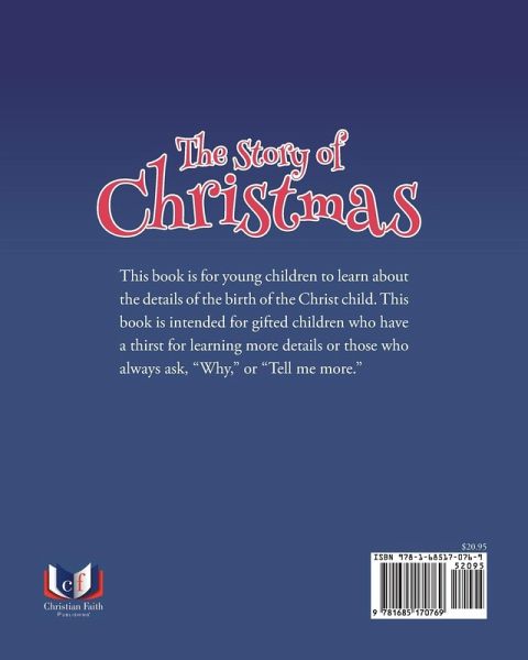 This book is for young children to learn about the details of the birth of the Christ child. This book is intended for gifted children who have a thirst for learning more details or those who always ask, "Why," or "Tell me more."