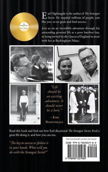 "It is not what happens to us that determines our future, but how we react to what happens to us." - Earl Nightingale. Earl Nightingale had an incredible life, from residing in a tent city during the Great Depression and surviving the bombing of Pearl Harbor, to becoming a renowned motivational speaker internationally. He received special recognition from Queen Elizabeth for his efforts in inspiring and uplifting people around the world. This iconic self-help pioneer's renowned teachings on the law of attraction, The Strangest Secret, have sold over one million copies worldwide and been translated into many languages. It has earned its status as one of the most popular and successful self-help books of all time and was the first ever spoken word recording. It was also the first gold record awarded for the spoken word, which later went platinum. "I picked up The Story of Earl Nightingale ... and came away feeling like he was a relative. This is done with a lovely and loving style of writing that takes the stuffy genre of biographies and makes it as palatable as fiction. Better than good fiction is a good story of a life that was really lived. Very highly recommended." -Asher Syed for Readers' Favorite 5.0 out of 5 stars It is said that Earl lived the life of ten men. The Story of Earl Nightingale and His Strangest Secret was told by his daughter and provides a unique and intimate look at an extraordinary life. Pick up this book today and learn about the father of self-help himself and how he lived when the cameras were on and when they were off!