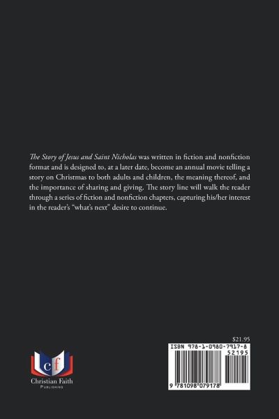 The Story of Jesus and Saint Nicholas was written in fiction and nonfiction format and is designed to, at a later date, become an annual movie telling a story on Christmas to both adults and children, the meaning thereof, and the importance of sharing and giving. The story line will walk the reader through a series of fiction and nonfiction chapters, capturing his/her interest in the reader's "what's next" desire to continue.