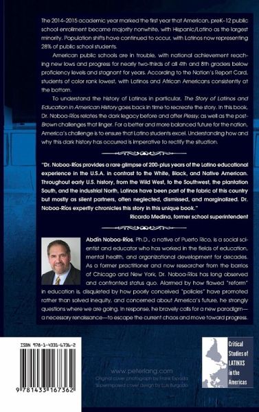 To understand the history of Latinos in particular, The Story of Latinos and Education in American History goes back in time to recreate the story. In this book, Dr. Noboa-Ríos relates the dark legacy before and after Plessy, as well as the post-Brown challenges that linger. For a better and more balanced future for the nation, America's challenge is to ensure that Latinostudents excel. Understanding how and why this dark history has occurred is imperative to rectify the situation.