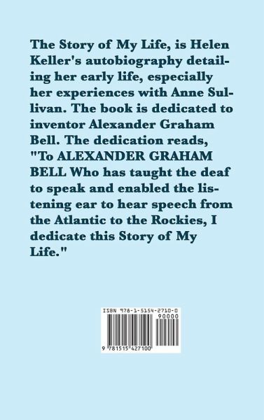 The Story of My Life, is Helen Keller's autobiography detailing her early life, especially her experiences with Anne Sullivan. The book is dedicated to inventor Alexander Graham Bell. The dedication reads, "To ALEXANDER GRAHAM BELL Who has taught the deaf to speak and enabled the listening ear to hear speech from the Atlantic to the Rockies, I dedicate this Story of My Life."