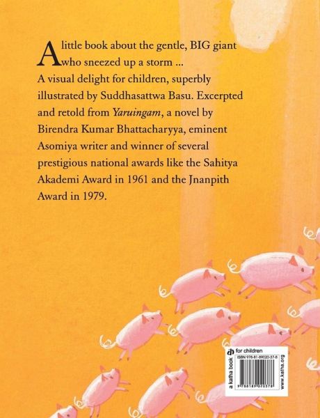 A little book about the gentle, BIG giant who can sneeze up a storm. A visual delight, superbly illustrated by Suddhasattwa Basu. This story is excerpted and retold from a novel by Asomiya winner Asomiya Kumar Bhattacharyya, winner of the Sahitya Akademi Award and the Jnanpith.