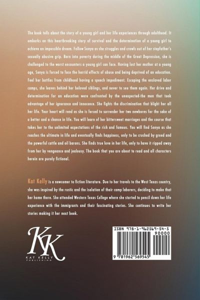The span of sixty years is the life story of a young girl and the sacrifices she had to make to achieve her goals. The book tells about the story of a young girl and her life experiences through adulthood. It embarks on this heartbreaking story of survival and the determination of a young girl to achieve an impossible dream. Follow Sonya as she struggles and crawls out of her stepfather's sexually abusive grip. Born into poverty during the middle of the Great Depression, she is challenged to the worst encounters a young girl can face. Having lost her mother at a young age, Sonya is forced to face the horrid effects of abuse and being deprived of an education. Feel her battles from childhood having a speech impediment. Escaping the enslaved labor camps, she leaves behind her beloved siblings, and never to see them again. Her drive and determination for an education were confronted by the unexpected-the men that took advantage of her ignorance and innocence. She fights the discrimination that blight her all her life. Your heart will rend as she is forced to surrender her two newborns for the sake of a better and a chance in life. You will learn of her bittersweet marriages and the course that takes her to the unlimited expectations of the rich and famous. You will find Sonya as she reaches the ultimate in life and eventually finds happiness, only to be crushed by greed and the powerful cattle and oil barons. She finds true love in her life, only to have it ripped away from her by vengeance and jealousy. The book that you are about to read and all characters herein are purely fictional.