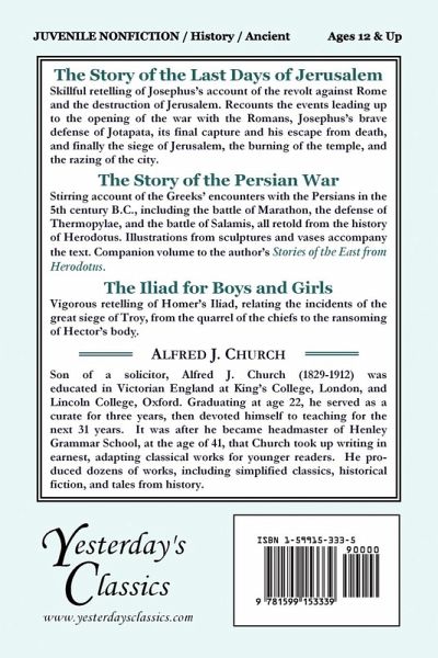Skillful retelling of Josephus's account of the revolt against Rome and the destruction of Jerusalem. Recounts the events leading up to the opening of the war with the Romans, Josephus's brave defense of Jotapata, its final capture and his escape from death, and finally the siege of Jerusalem, the burning of the temple, and the razing of the city. Numerous black and white illustrations complement the narrative. Suitable for ages 12 and up.