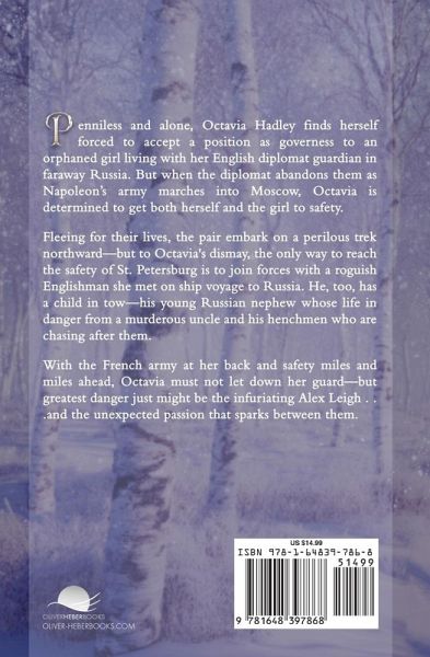 Penniless and alone, Octavia Hadley finds herself forced to accept a position as governess to an orphaned girl living with her English diplomat guardian in faraway Russia. But when the diplomat abandons them as Napoleon's army marches into Moscow, Octavia is determined to get both herself and the girl to safety. Fleeing for their lives, the pair embark on a perilous trek northward-but to Octavia's dismay, the only way to reach the safety of St. Petersburg is to join forces with a roguish Englishman she met on ship voyage to Russia. He, too, has a child in tow-his young Russian nephew whose life in danger from a murderous uncle and his henchmen who are chasing after them. With the French army at her back and safety miles and miles ahead, Octavia must not let down her guard-but greatest danger just might be the infuriating Alex Leigh . . .and the unexpected passion that sparks between them.