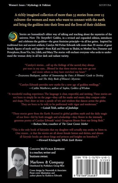 The Storyteller's Goddess is a collection of more than 30 stories from 20 cultures that celebrate the goddess. They are organized around seven healing goddess principles and are inspired by traditional goddess lore and ancient artifacts. Each one is introduced by placing it in its cultural and historical context, telling the story's origins, and describing props that can be used to invoke that story's goddess- from Kali and Hecate to Shekina, Kuan Yin, Athena, Mary, and Lilith.