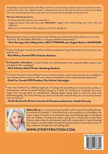 Storytelling is an essential business skill. We use stories in a variety of ways to attract customers, partners, investors, and build your team. Your audience needs to understand why you do what you do, and your powerful storytelling skills must emotionally hook them. A pie chart can't communicate emotionally, the way stories do. This book will teach you how to: Find your pertinent stories for keynotes, town halls, sales and investor presentations, fundraising and recruitment interviews, as well as media appearances. Craft your stories to stop the meander. Put your listeners in a "Mind Movie" so that they see it, taste it, smell it, touch it, and most of all, feel it---so that your leadership becomes magnetic, memorable, and impactful to drive the results you seek. Transform your verbal presentation slides so that they support you, and don't usurp you with too much information. As Steve Jobs said, "The most powerful person in the world is the storyteller. The storyteller sets the vision, values, and agenda of an entire generation that is to come." And, I'll add that as the presenter or storyteller, you have the obligation to educate, empower, inspire, motivate, and entertain. That's where refined storytelling skills come into play. Your business mission, vision, and work depend on the connections you make with others. Your stories matter, so tell them well!