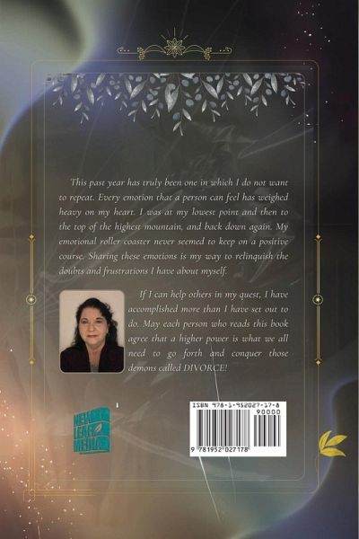 This past year has truly been one in which I do not want to repeat. Every emotion that a person can feel has weighed heavy on my heart. I was at my lowest point and then to the top of the highest mountain, and back down again. My emotional roller coaster never seemed to keep on a positive course. Sharing these emotions is my way to relinquish the doubt and frustrations I have about myself. If I can help others in my quest, I have accomplished more than I have set out to do. May each person who reads this book agree that a higher power is what we all need to go forth and conquer those demons called "DIVORCE!"